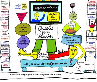 Noi gli volevamo bene dai tempi del Carnaval Indépendent del quartiere nizzardo St. Roch, fine anni Ottanta. Era l’opposto di Ugo Nespolo: occitano e savoisien anziché occidentale e savoiardo; amato dai piccoli e dagli umili, più che valorizzato dai parvenu. Un’analogia affettiva: Piero Gilardi forse. Sentiamo in entrambi l’universalità delle Alpi di Mare nella coerenza rispetto a mappe mentali tra loro complementari.