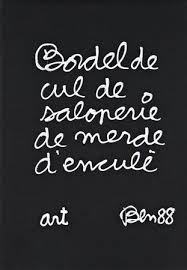 Ben aveva iniziato con il lettrismo e fluxus (circa 70 anni fa) la sua produzione artistica divertente, dissacrante, radicalmente umanista.