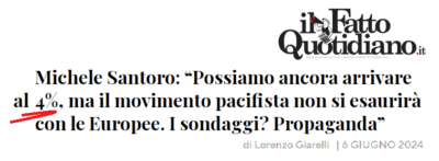 Dichiarazione dal canale youtube Michele Santoro presenta, pubblicata nel pomeriggio di martedì 11 giugno 2024 a commento dei risultati elettorali di PACE TERRA DIGNITÀ. Durata: 9 minuti.